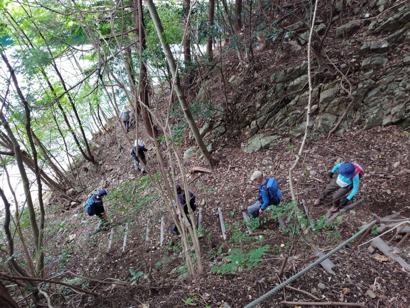 坂尻バス停に降り立つと、空には雲が多かった。しかし、次第に晴れそうな気配を感じながら登山口へ向かう。宮ヶ瀬道入り口で準備体操を行い、総勢20名を二つの班に分けてスタートする。里山の静けさの中を登りはじめると、心地よい秋の空気が流れこんでくる。