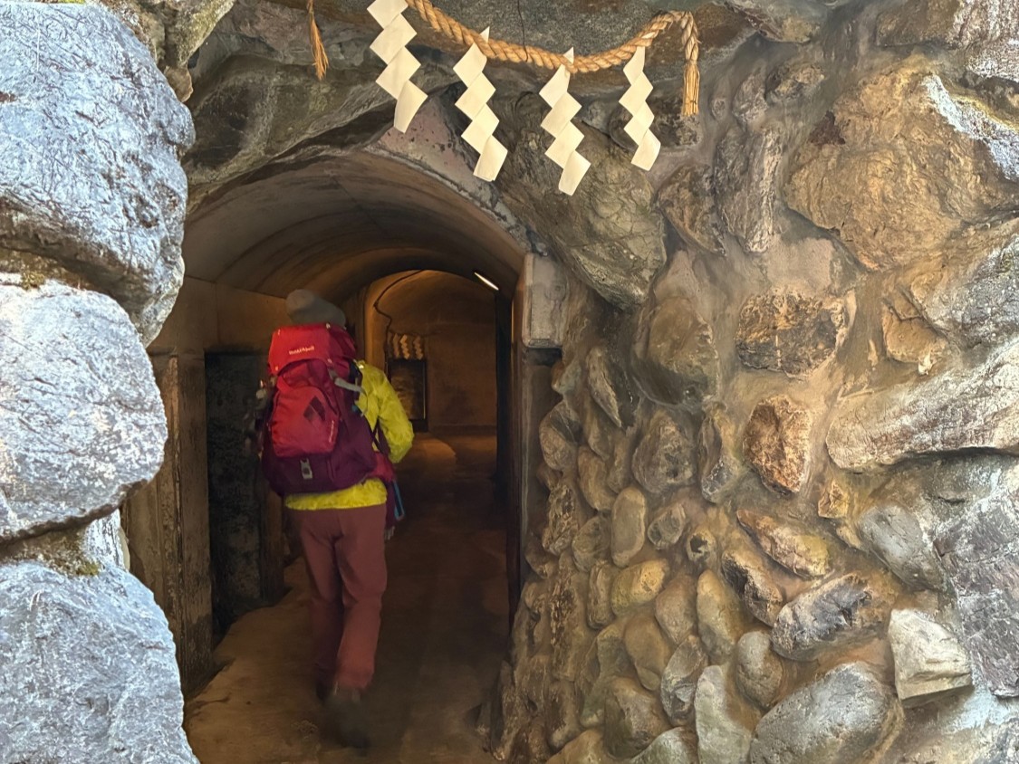 甲府駅に8時30分に集合した14名で、タクシーに分乗。登山口のフェンスを開いていざ!朝の雨がうそのように青空が広がる。登山道はふっかふかで心地良い。静かな森林帯に突然現れた奇岩は、歌川広重が描いたと言われ、歴史を感じる。広い森林は美しく、ロマンチックだ。落ち葉に赤や黄色も混じり、自然と歩みが進む。「写真撮りたかったら止まるので言ってねぇ」と、天使の声に笑みがこぼれる。