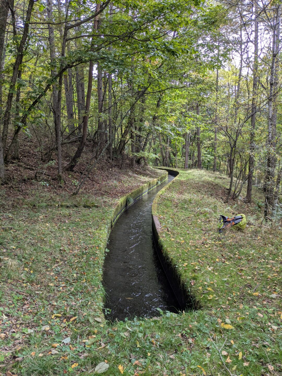 その後しっとりした林道を進み用水路へ。水量が豊富です。さらに進むと本沢に突き当たります。あれ、渡れない?と思いきや、川にそって下ると車道の橋があり、無事に渡れました。