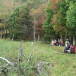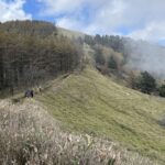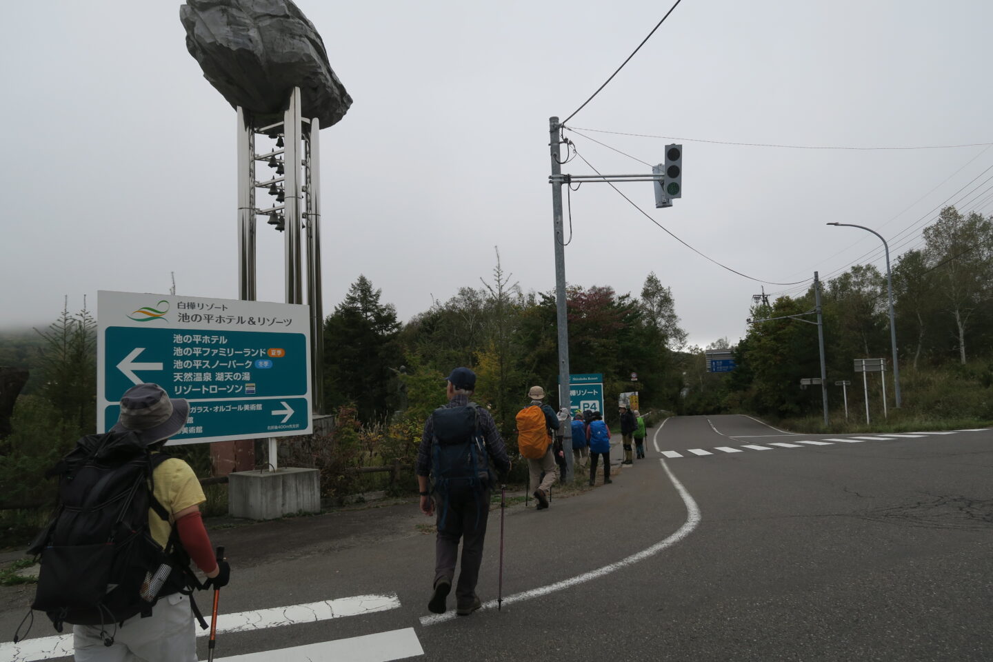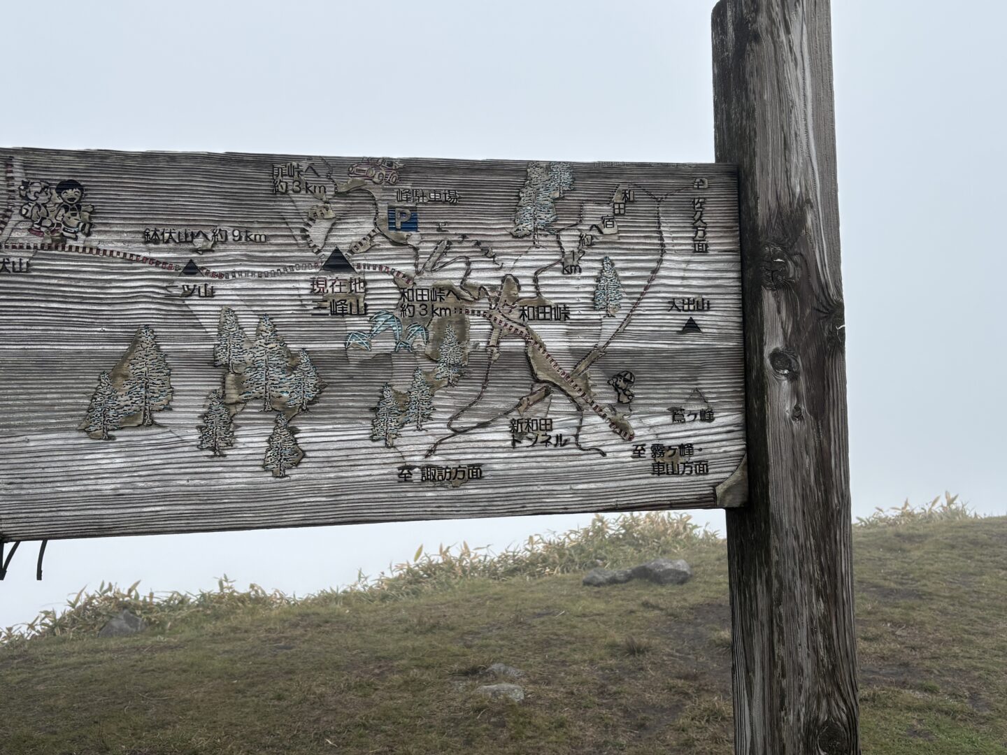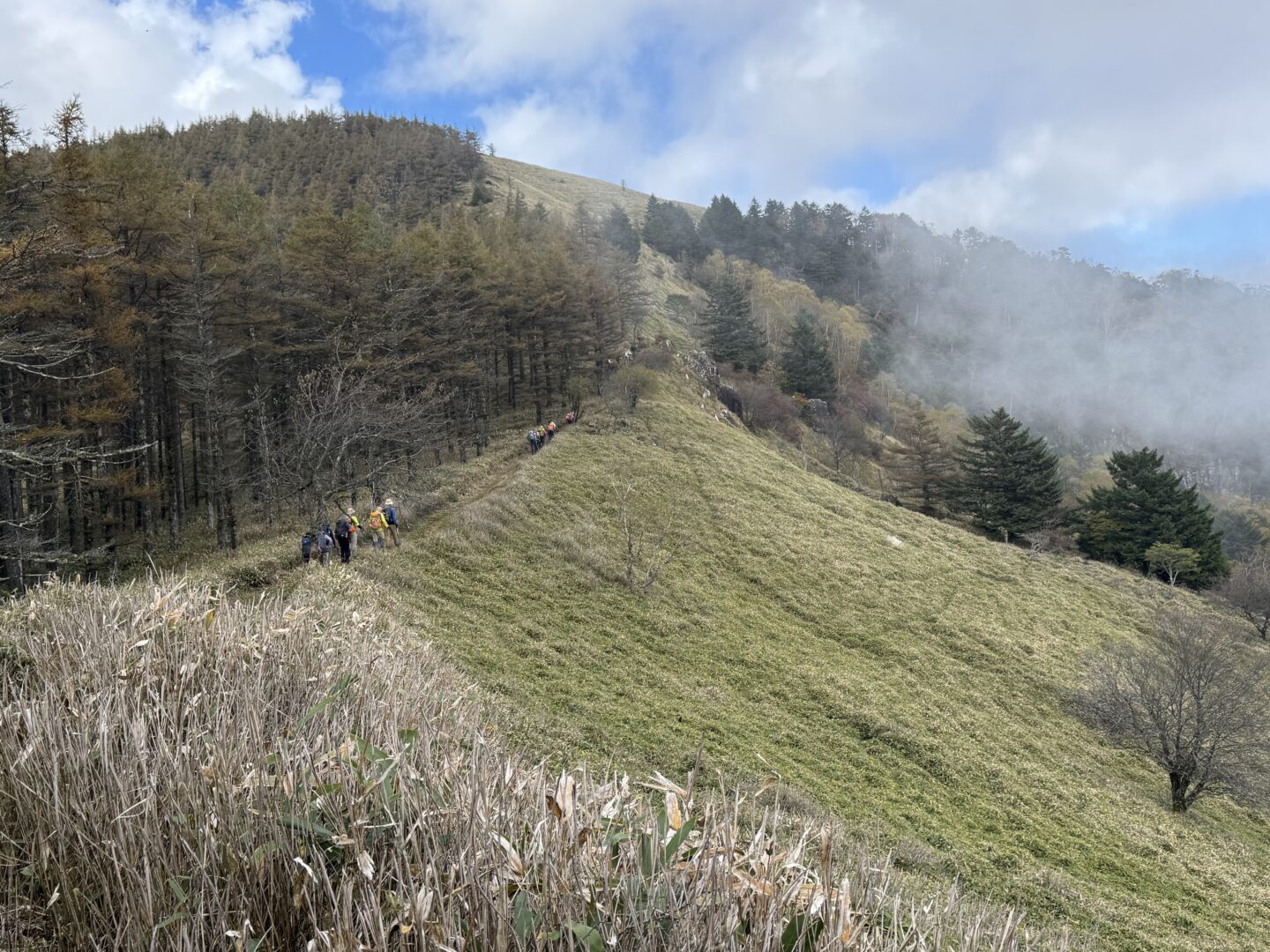 鷲ヶ峰から1時間ほど下り、今日の到達点である和田峠に着きました。9月は体調が悪く歩いていない中での参加でしたので歩けるか不安がありましたが、何とか今日の行程を歩くことができ、ホットしました。霧雨の霧ヶ峰を歩いていると幻想的で、夢の中をさ迷っている感覚に捕らわれることがあり、不思議な心地がしましたが、次回は美しい雄大な景色を堪能できることを期待したいです。(文責:4112)