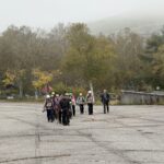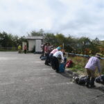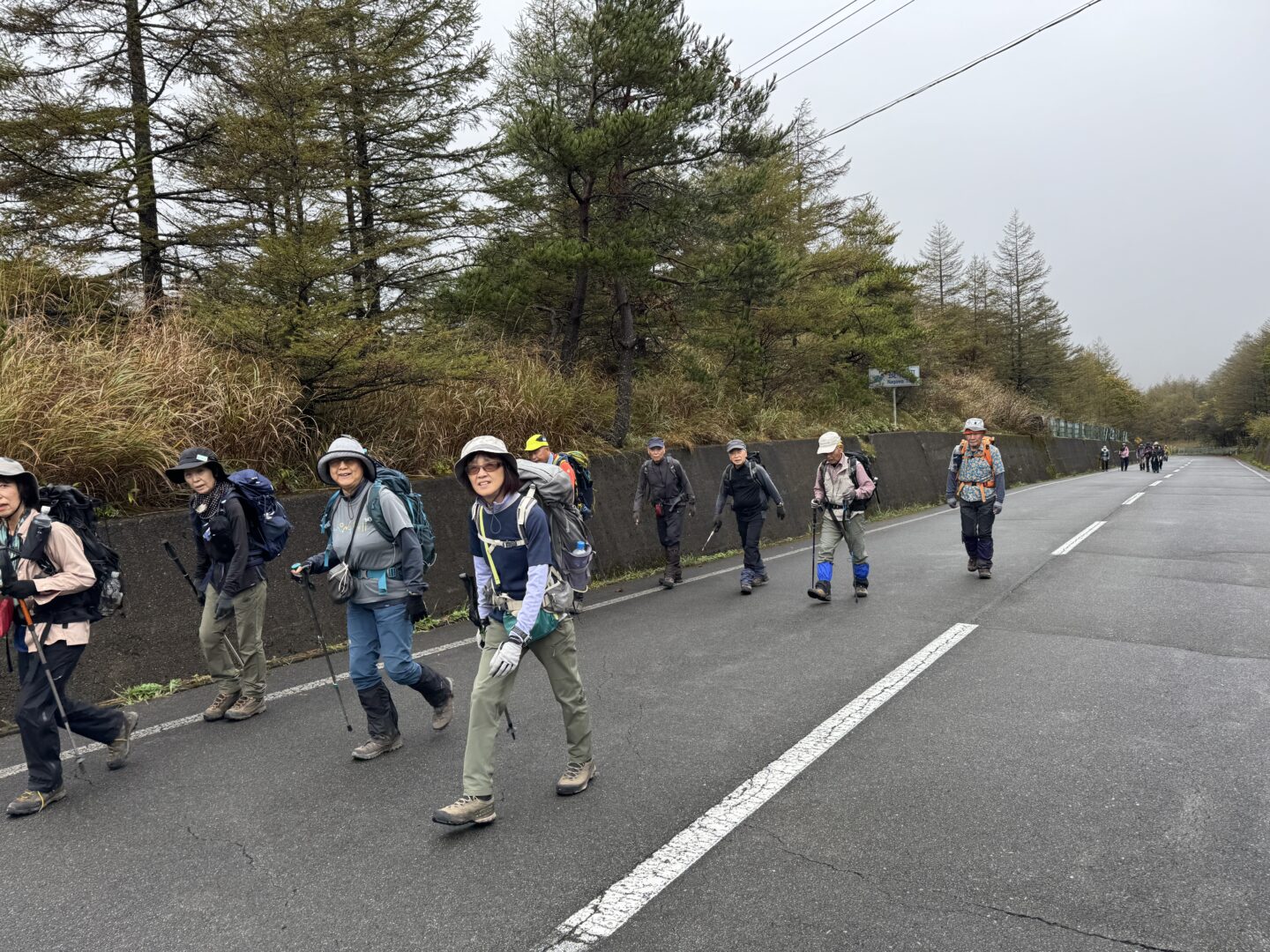 午後から雨の予報のため、出発が7時40分と早まり、体操後、前日の終了地点の大門峠に向け曇り空の中、出発しました。