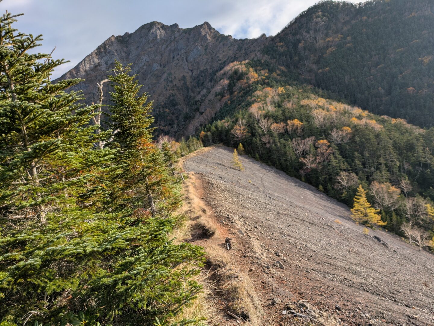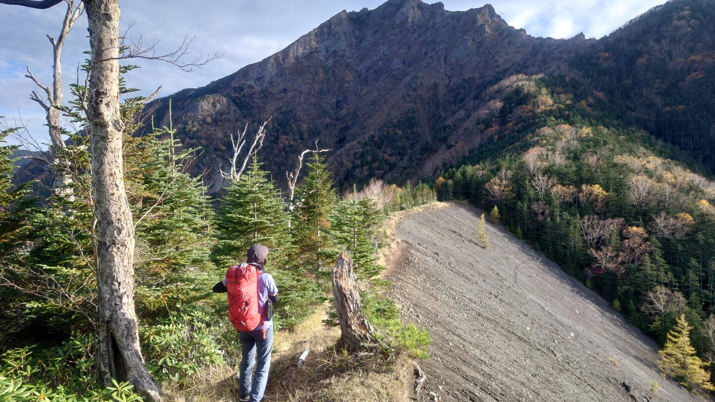- 中央陵を下っています。後ろの岩稜?を下りてきました