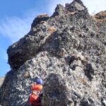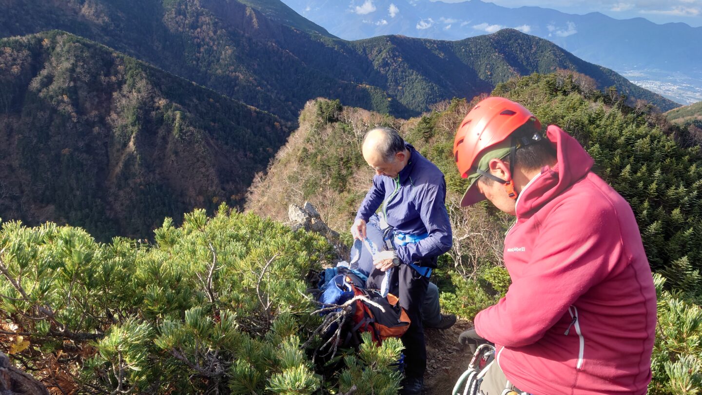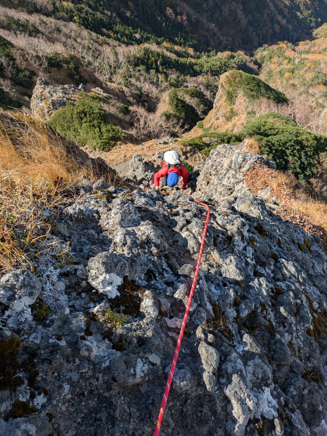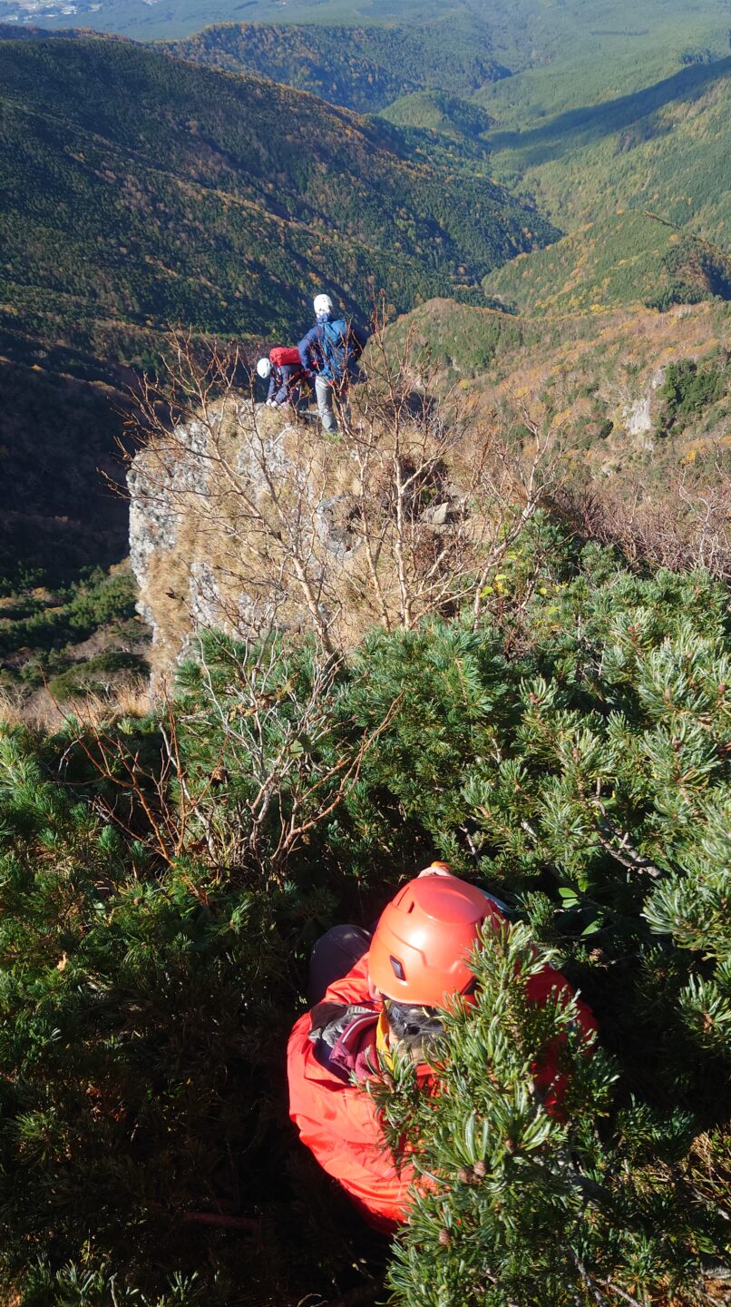 核心部は短い岩峰登りだったが、高度感を感じながら登る緊張感と達成感、チームで登る一体感を経験できた特別な山行となった。 (文責:4063)