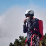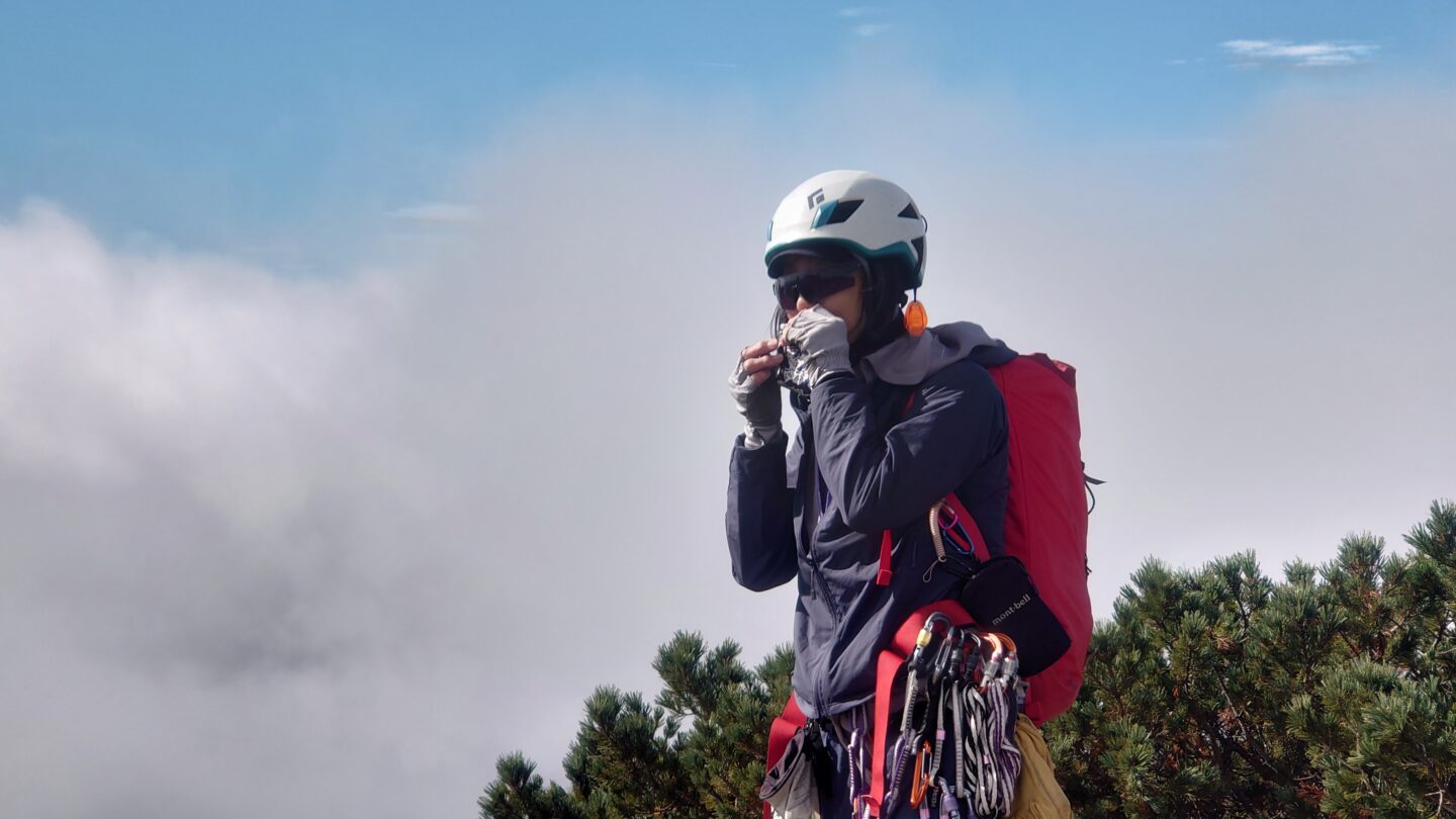 一方でCLはSLとともにテキパキと準備を進め、強風と寒さの中、CLがリードで登り始める。慎重に登れば行けるのか、いや行くしかないと考えていた時、不安を見透かしたようにメンバーのひとりが「俺が先に行こうか」と言って先行してくれた。アッセンダーのセットの仕方、足の置き方、掴んだ岩などじっくり観察し、自分の番に備えた。