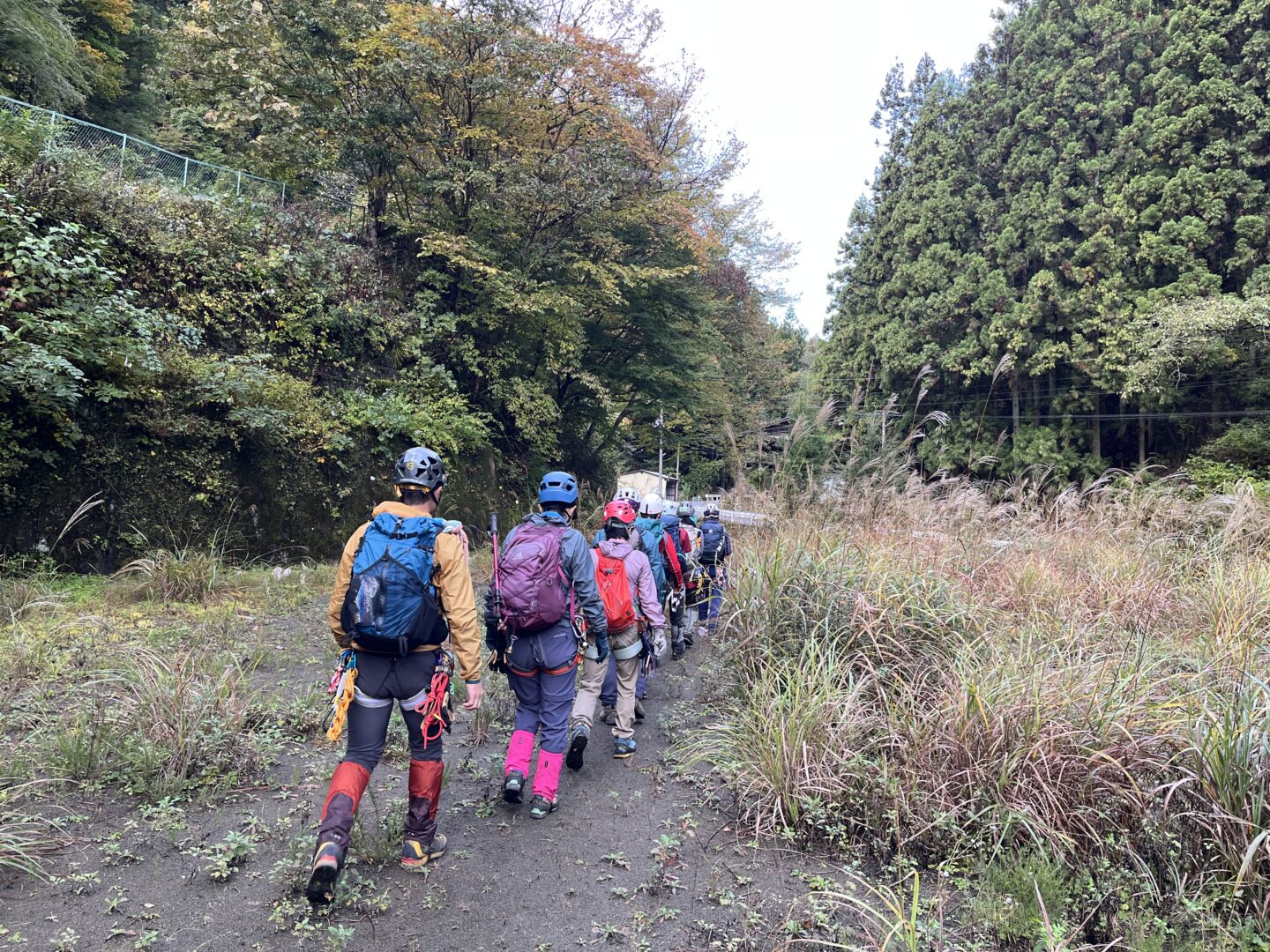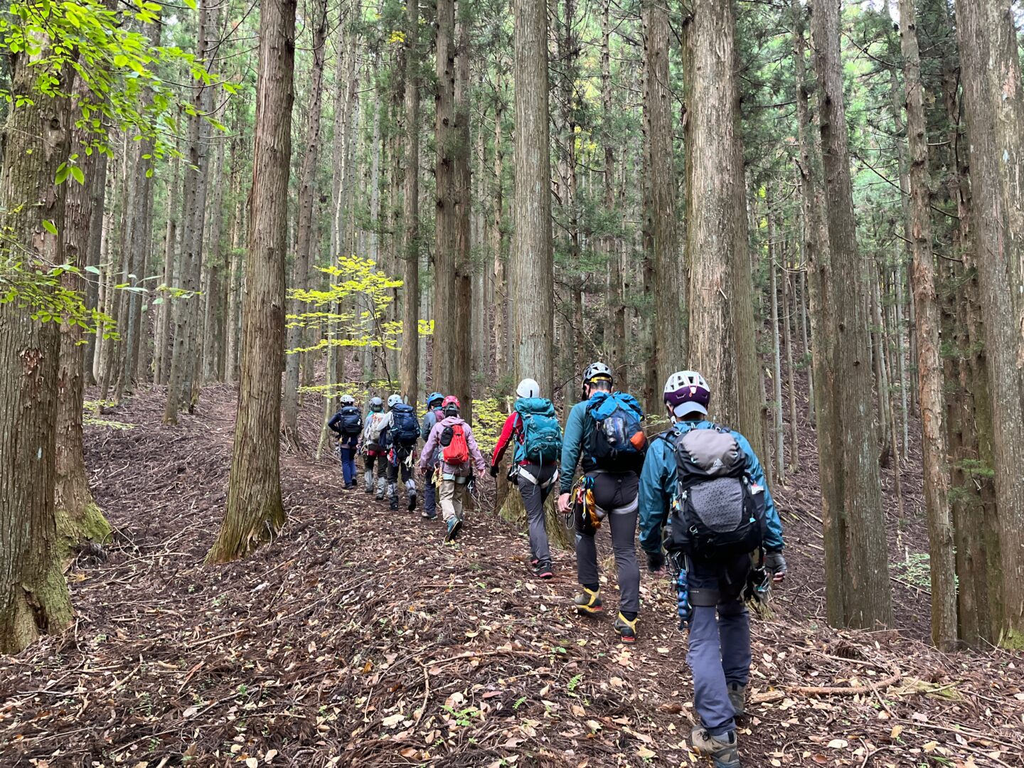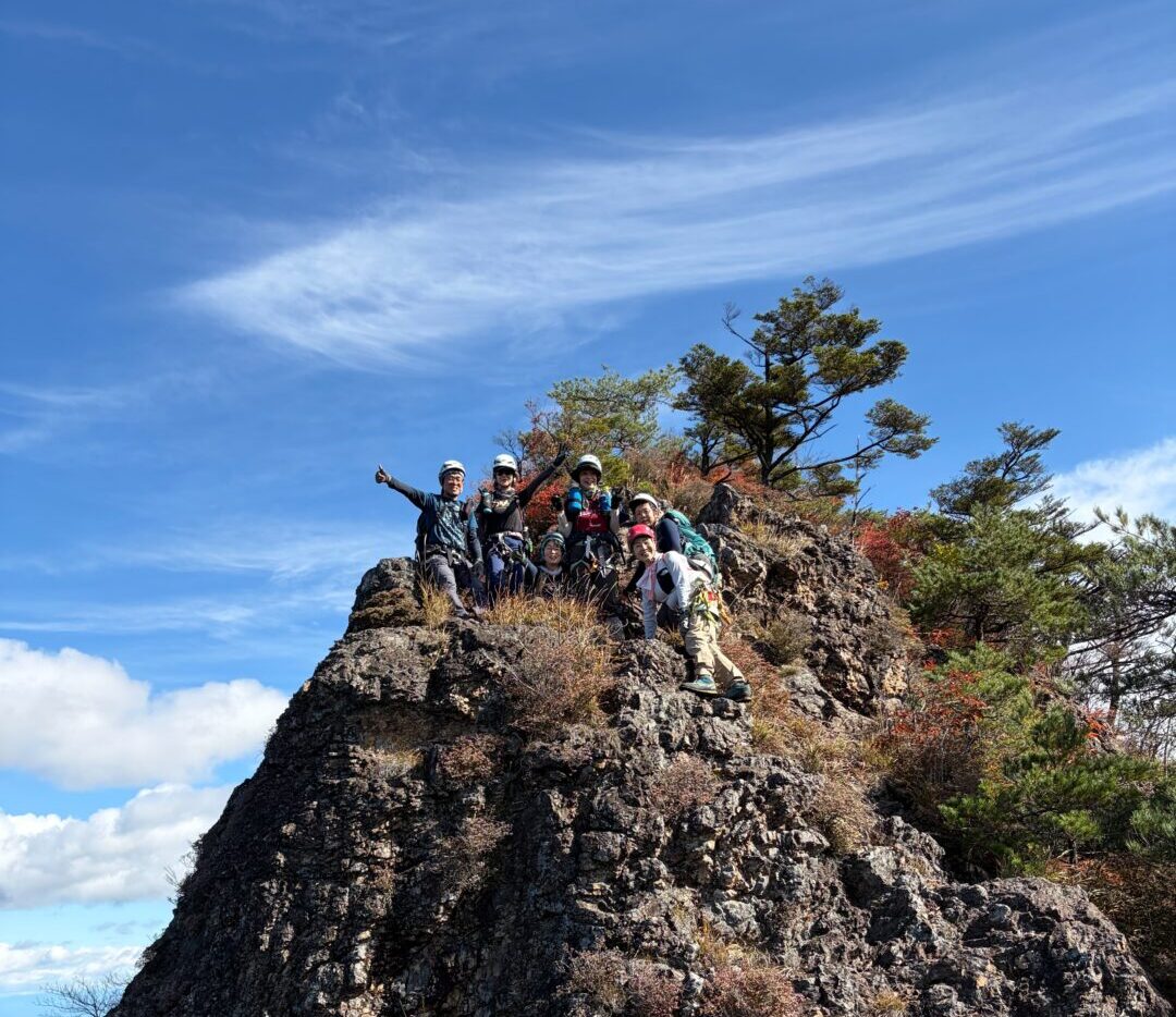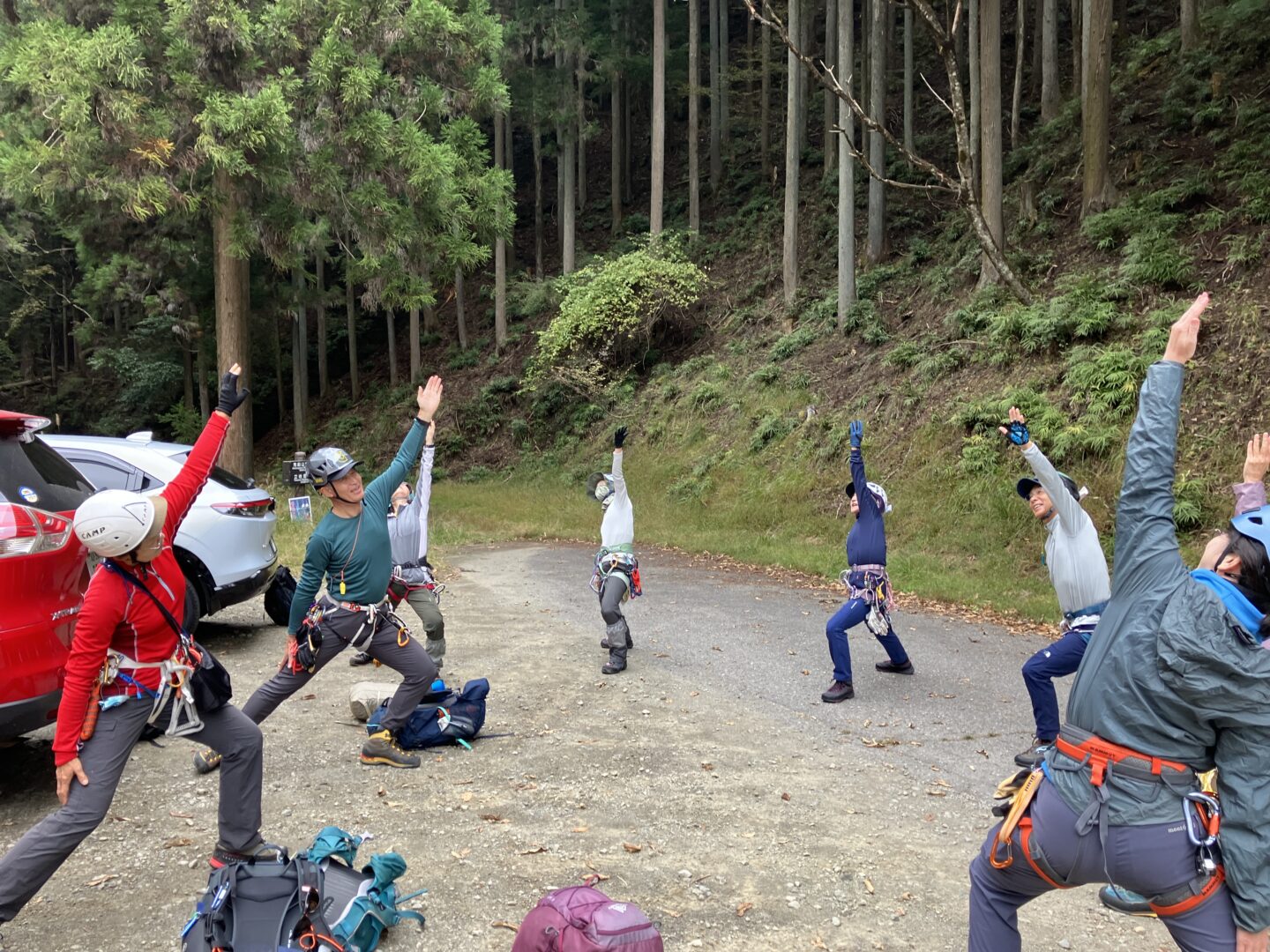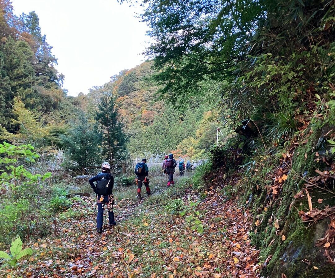 今回、プチバリ初級コース。初参加者も多く、碧岩直下の2段20m岩登り箇所での2回のロープ出しや懸垂下降などで想定以上の時間を要したが、快晴の中、秋の西上州とプチバリ山行を存分に楽しめたのではないだろうか。