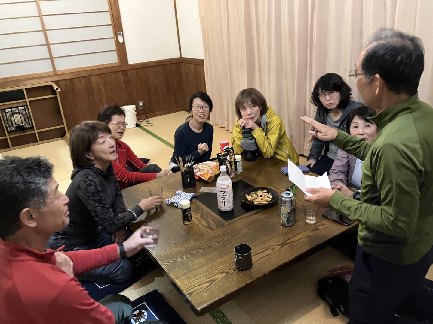 CLの予想通りの雨が降り始めた。入浴を終え、はこだたみキャンプ場に移動。バンガローで皆で囲むキムチ鍋の夕食の場は談笑が尽きない。大降りになり始めた雨音に明日の天候の回復を祈り、西上州のマッターホルンに期待と不安を抱きながら就寝。(文責:4032)