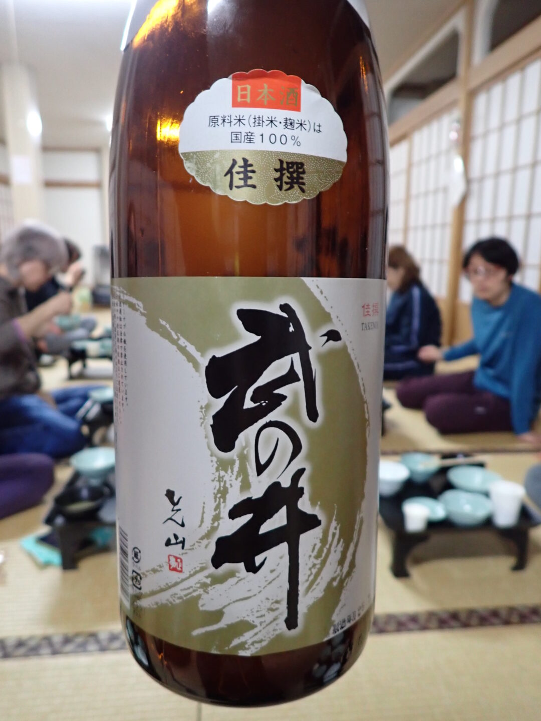 - 振る舞い酒の御神酒一升瓶を、23人で仲良く分け分け