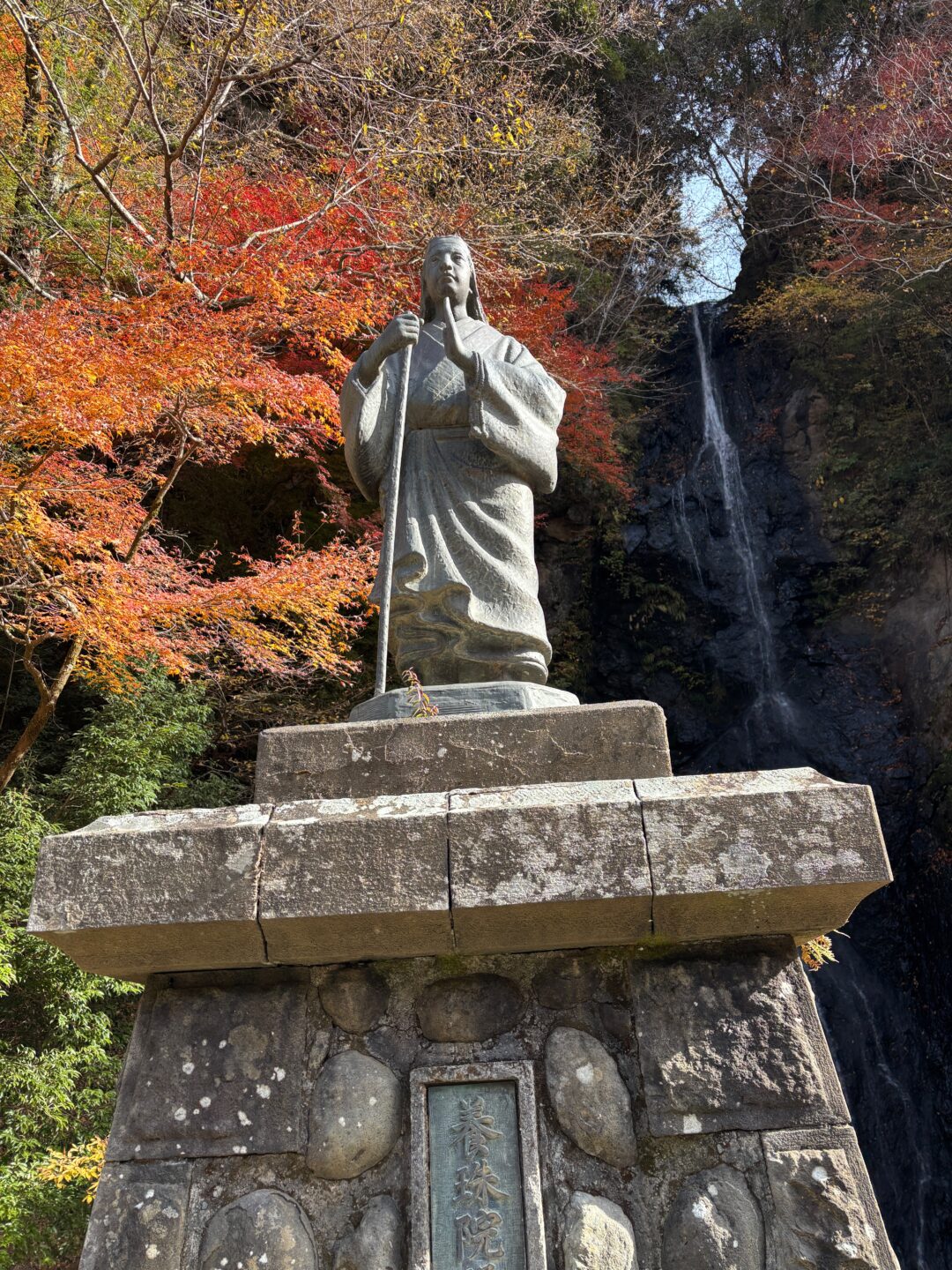 - 女人禁制を解いたお萬の方像と白糸の滝