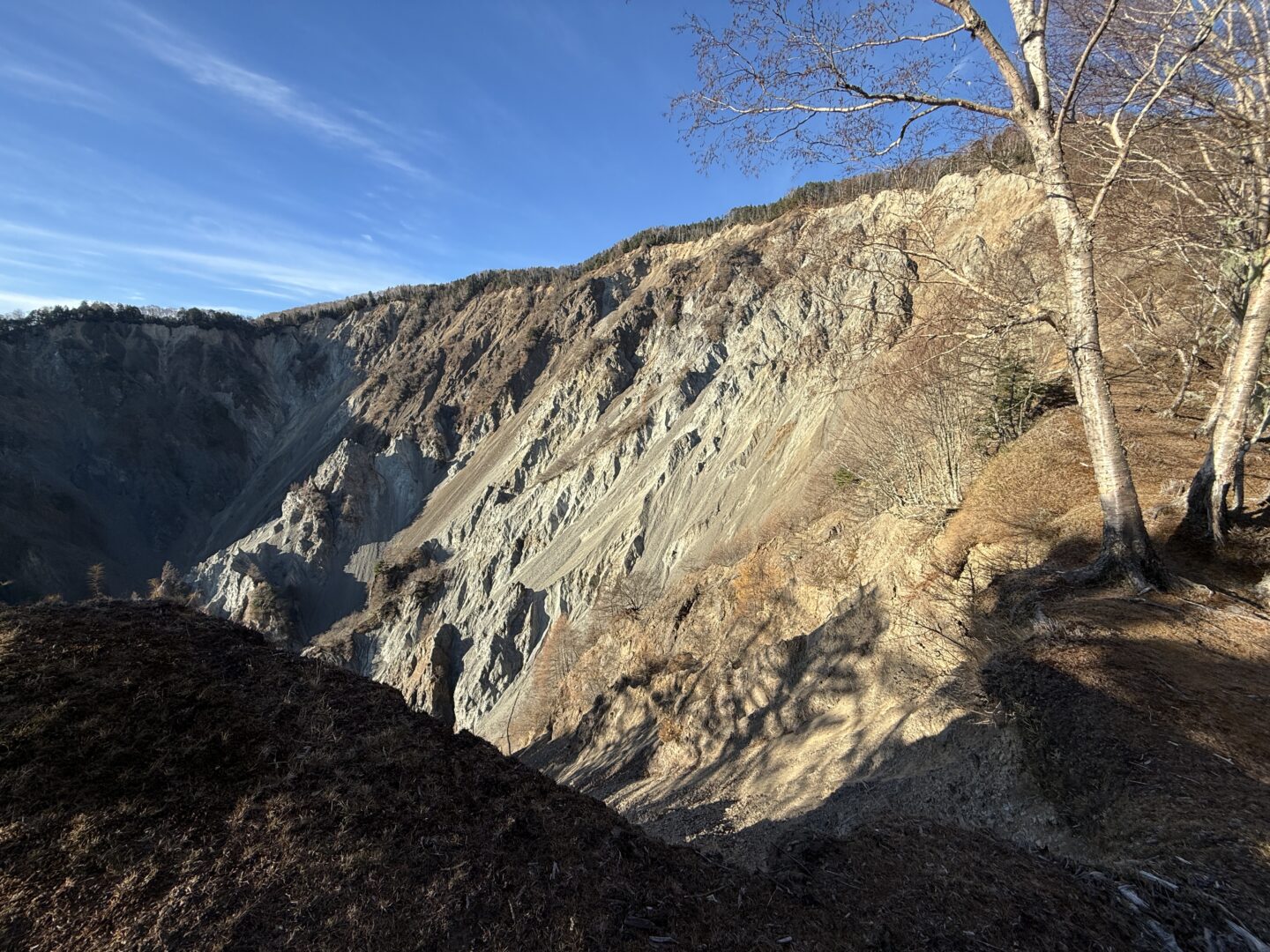 - 山頂直下からものの見事にえぐり取られた、大迫力のナナイタガレ