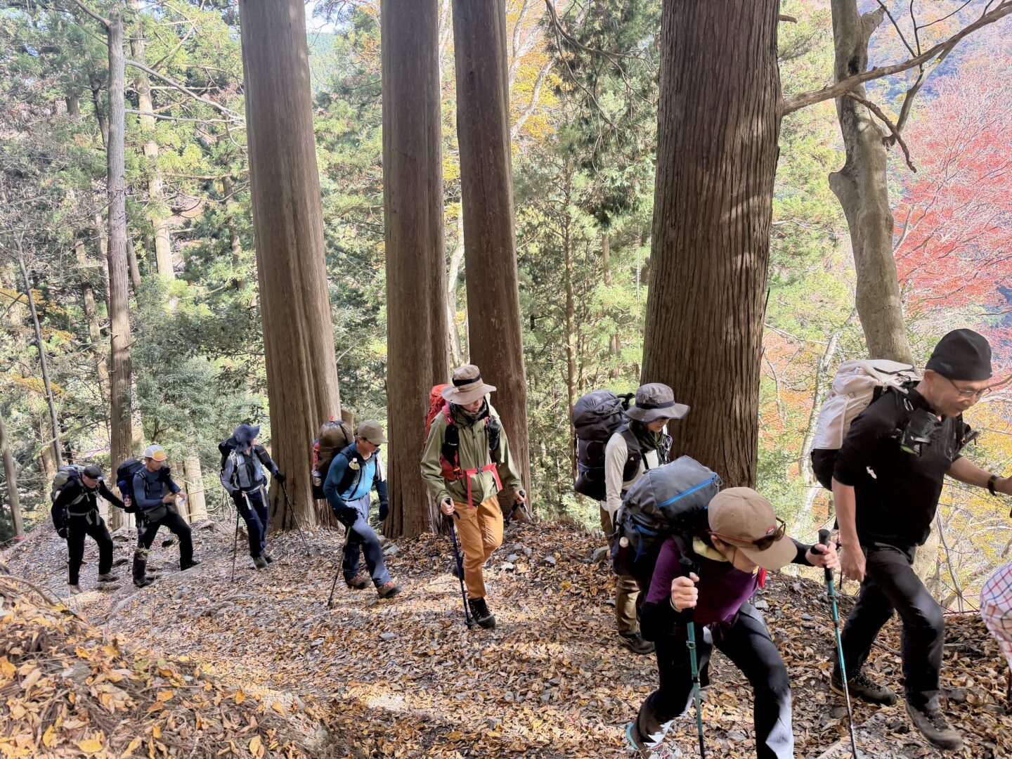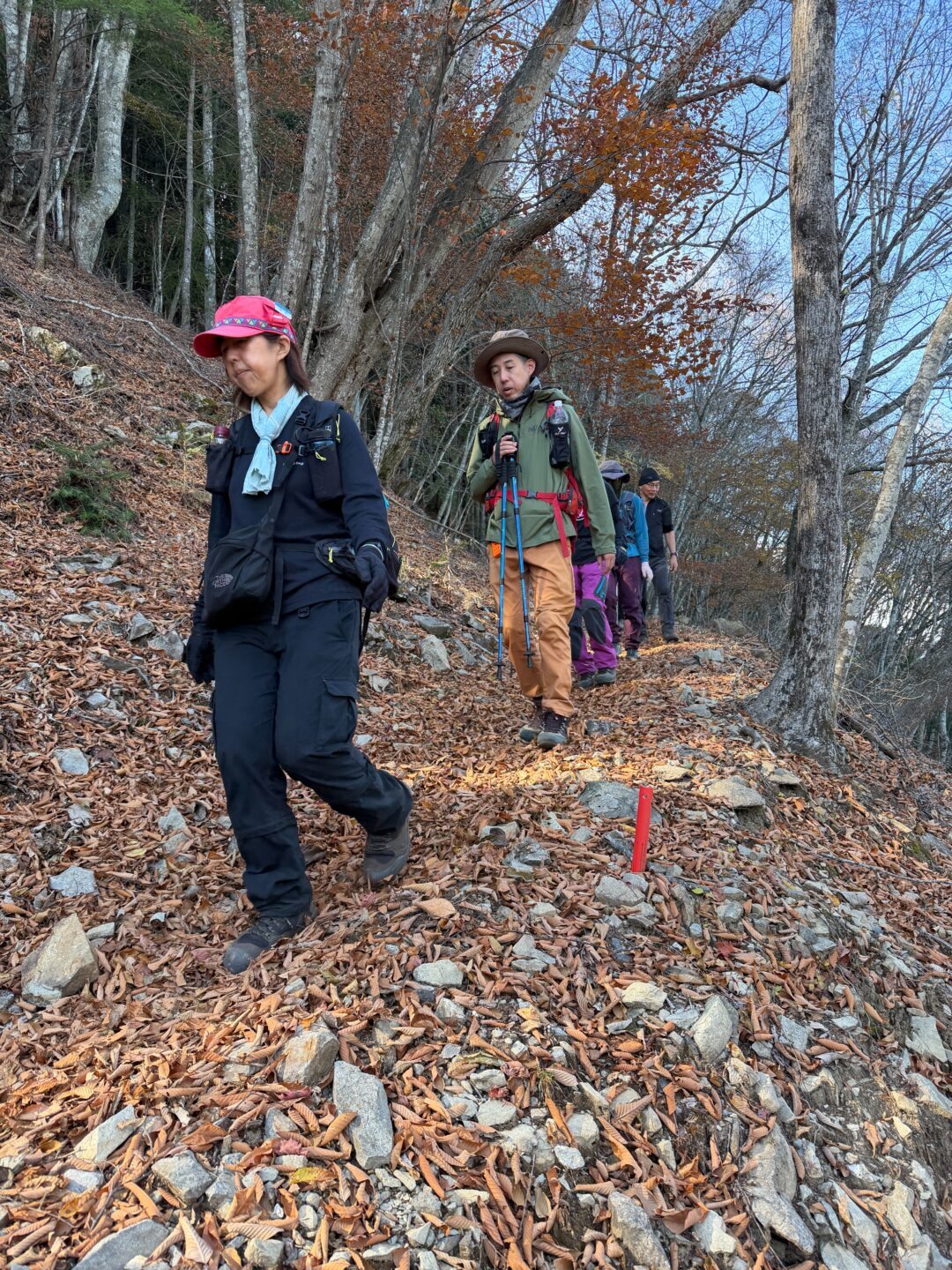 両日とも快晴で、見たい景色を総取り。下山道は落ち葉が堆積し時間を取られたものの、SLや先輩リーダーらのフォローをいただき、無事バスに間に合った。大所帯のため班分けし、若手参加者に班長を無茶振りしたが、各々率先して動いて下さり大変助かった。