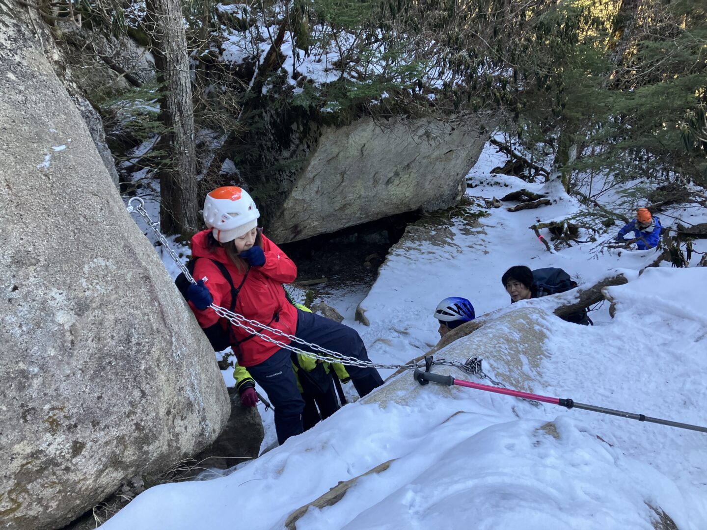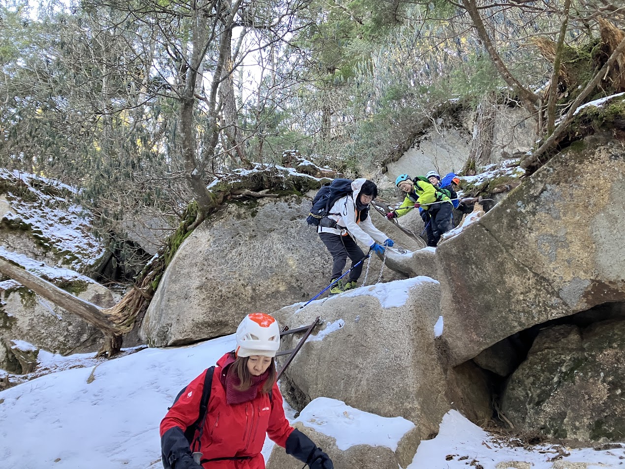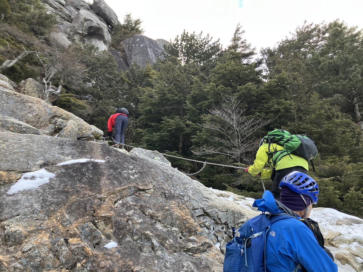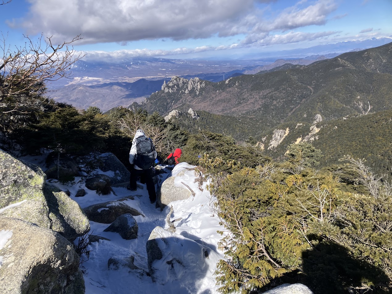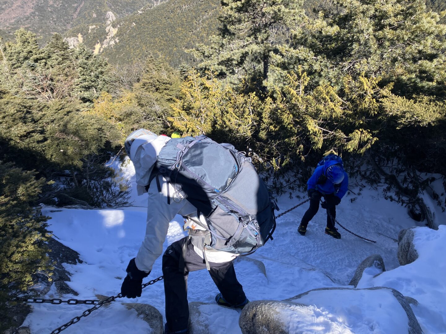 - 下りの鎖場、アイゼンを効かせて慎重に下る