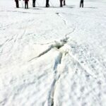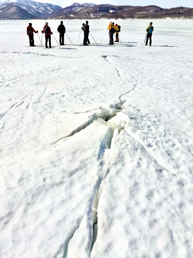 - 結氷した桧原湖を横断した仲間たち