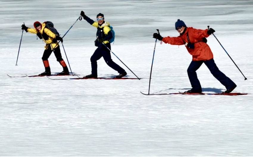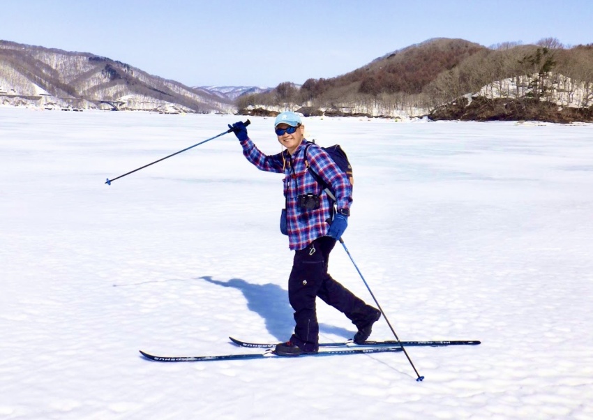- 結氷した桧原湖をスイスイと進む。上手になったね