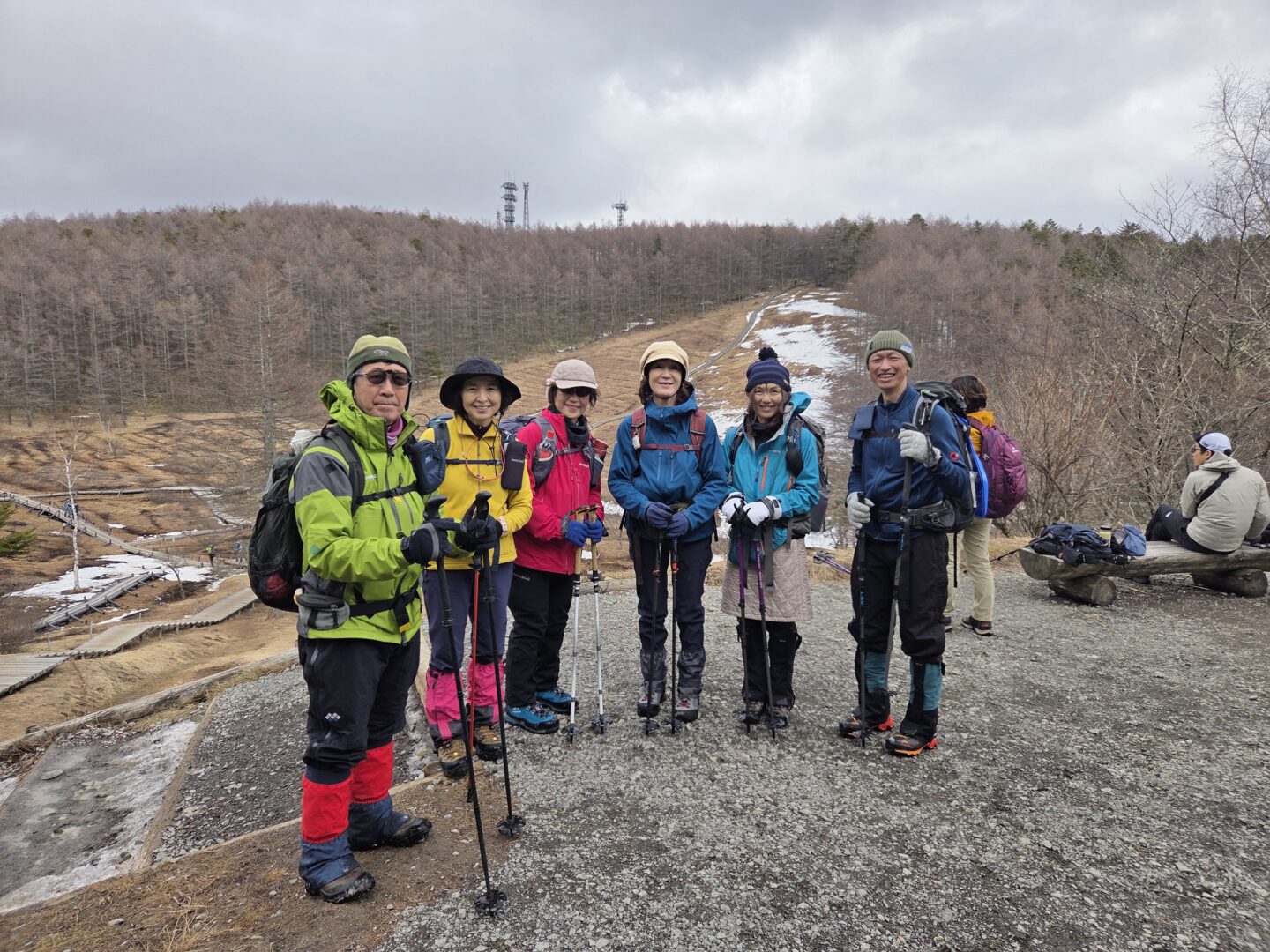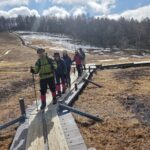 はたして参加者が楽しめる山行になるだろうか?CLの自分には不安だけしかなかった。ロープウェイで上がってみると、白銀の世界!と言ってもスキー場の人工雪だ。スキー場から出ると地面が見え、普通なら真っ白の入笠湿原だが、乾いた木道を歩く。「やはりダメか…」。