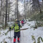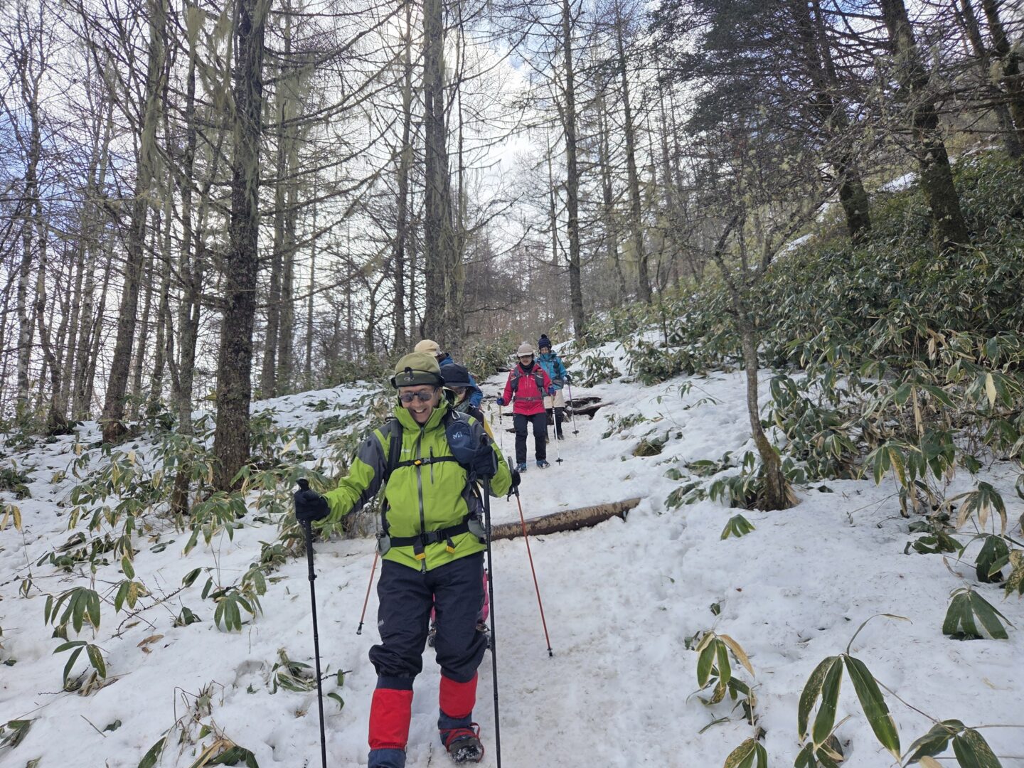 スノーシュー体験が目玉の山行なのに、雪不足により楽しい「フカ雪」歩きができないことは事前にわかっていた。そこで軽アイゼンでの登山に予定変更し、それでも参加を希望された方々と山行を決行した。