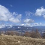 登山道は締まった雪で覆われ、軽アイゼンの練習にはピッタリ。あっという間に登頂。頂上付近は雪がなく、風も弱かったので、八ヶ岳を見ながらゆっくり昼食。