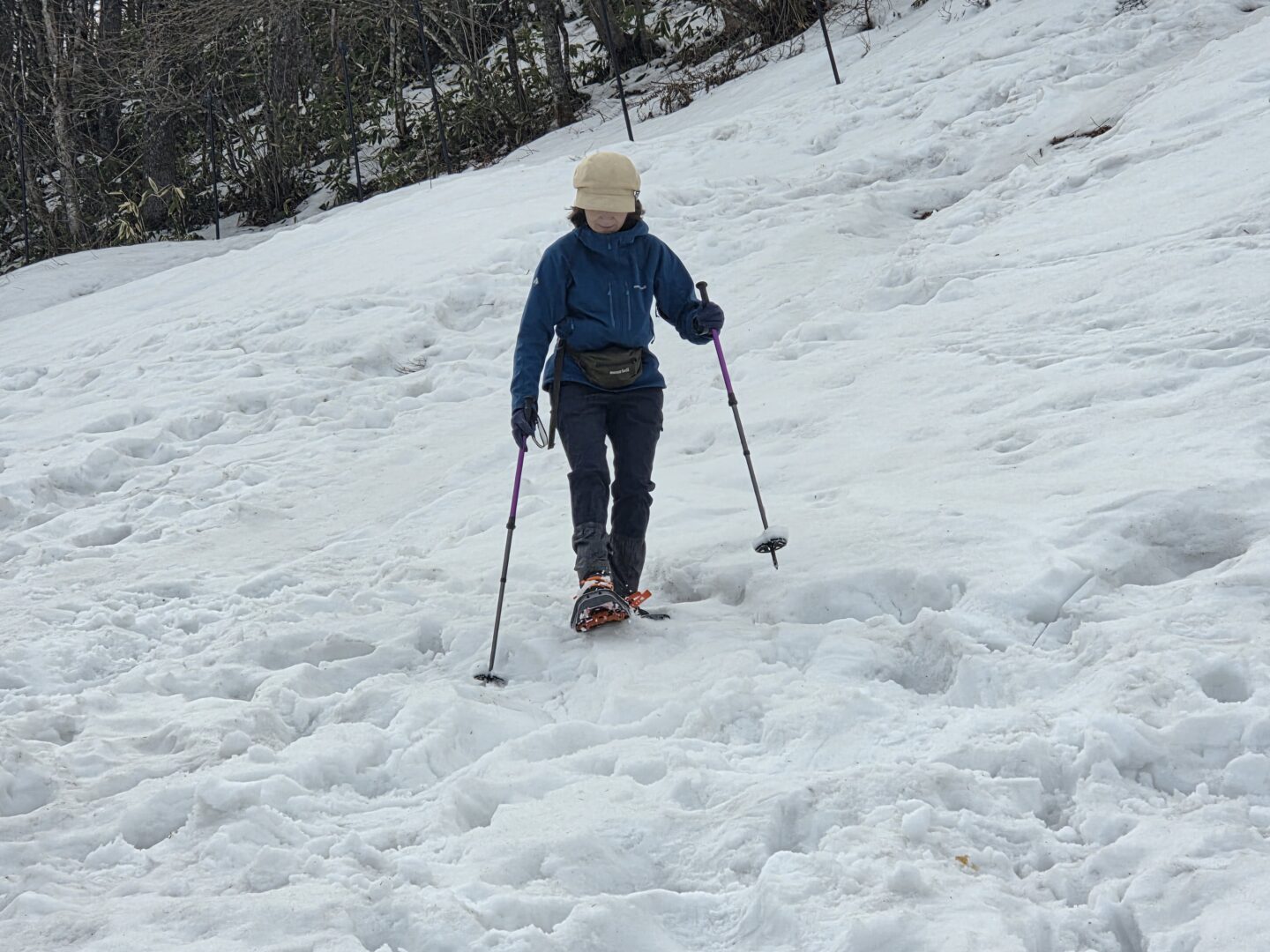 - 軽アイゼンを履いて、やっと雪歩きだ!